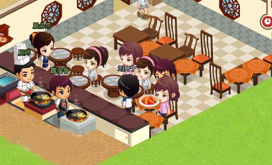 不一定椅子多服务速度就快的,如下图,后面椅子基本上算是作废的,这样摆时间最省,原则上以服务员最靠近厨师和顾客为准,缩短上菜时间,如下图: 欢迎大家交流