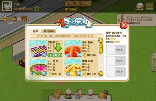 点击学习了之后就可以购买食材。