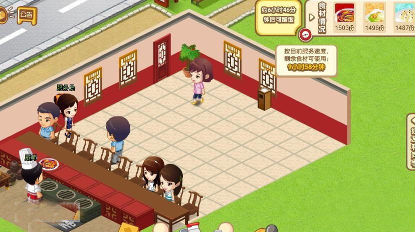 大家可以看到,菜全部加满。所需要的时间,经验和金币没有涨,菜也送不到客人手里,客人也没付钱。刷新一下或是关掉在进再看,经验和金币是涨的!