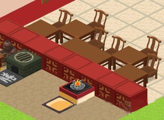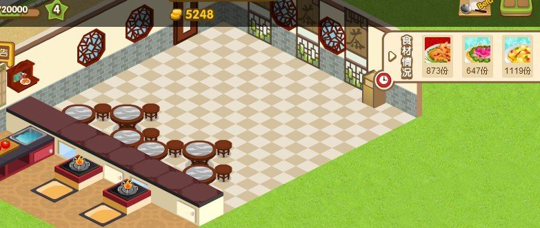 这是第一种,刚开始玩时用的这种,当时觉得是宇宙无敌了,达到效率最大,需要一个厨师以及两个服务员,切记。但是自从有了第二种……