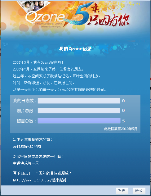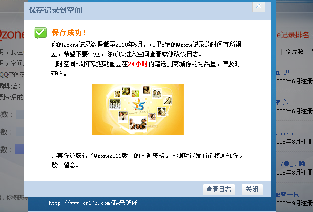 5、恭喜你获得了Qzone2011版本的内侧资格。