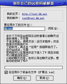 今天我们就利用它的制作补丁功能制作出QQ聊天补丁,突破QQ的本地密码验证,使得我们无需输入密码就可以进入QQ,实现自由查看QQ聊天记录的目的!