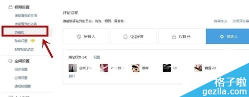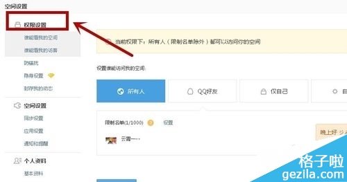 5、在界面中,选择”所有人、QQ好友、仅自己、指定好友“等,如图: