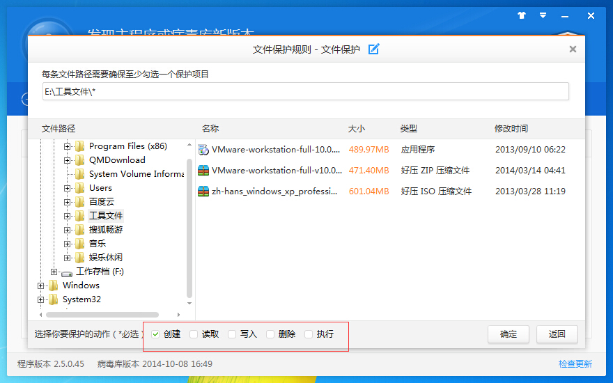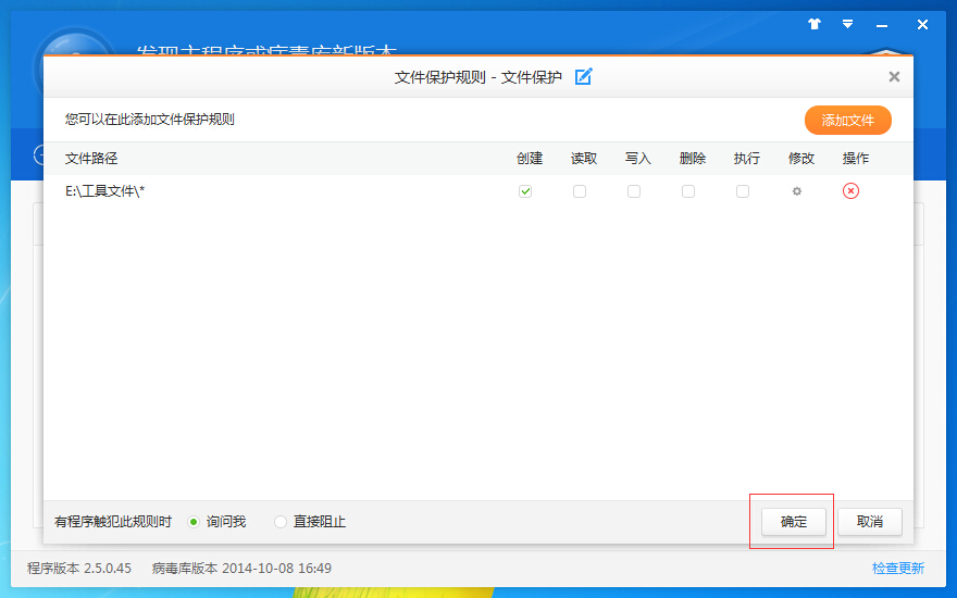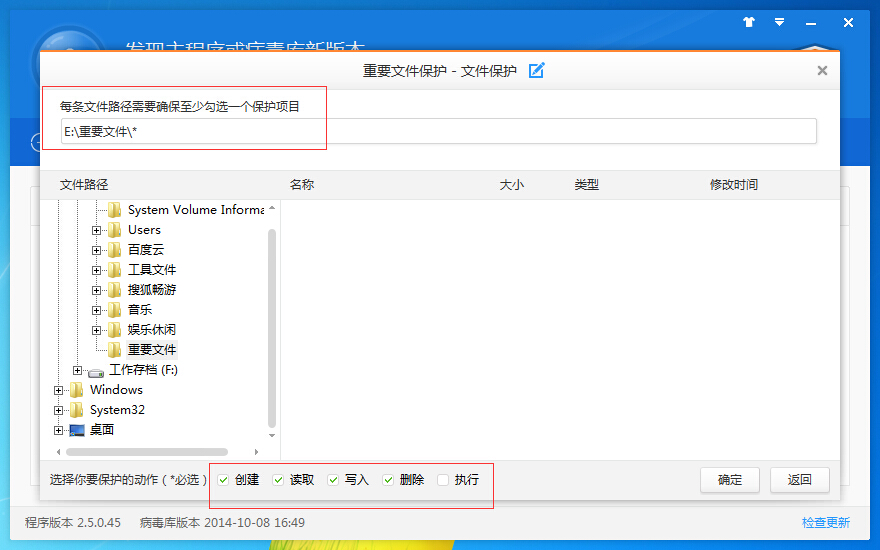 有时候我们电脑中会有一些重要的资料文件,不希望被自己不小心误删除或者被恶意软件改动,那么我们可以新建一条规则,选择需要保护的文件目录路径,进行保护。