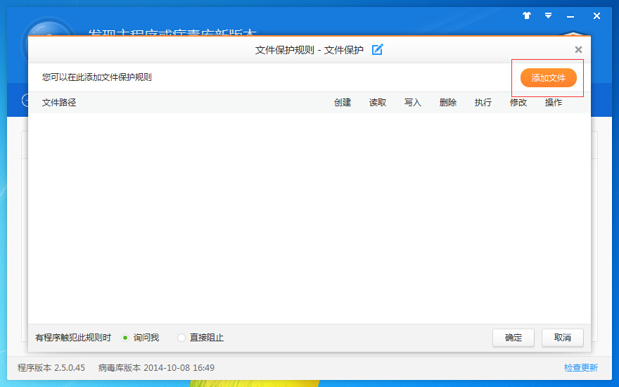 4,在规则包设置界面中可以通过添加文件选择保护的对象