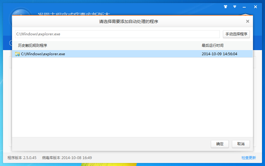 2,您可以在此手动选择程序路径,或在历史触犯规则程序列表中快速选择规则应用的对象