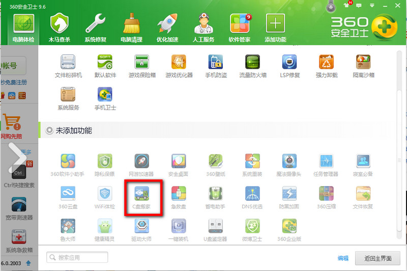 第二步:点击以后会跳转到另一个页面内,在这个页面找到“C盘搬家”