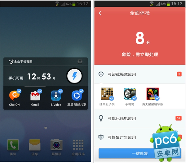 名称: 金山手机毒霸v3.3.1 大小: 8.5M 下载: http://www.pc6.com/az/78710.html