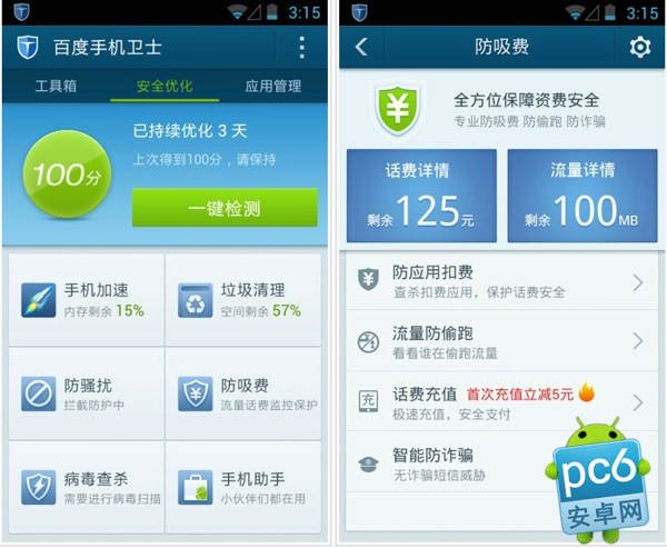 名称: 百度手机卫士v5.11.0(原安卓优化大师) 大小: 15.1M 下载: http://www.pc6.com/az/105017.html