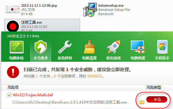 再次使用杀毒软件进行病毒扫描,你就会发现它不会被提示是病毒了。