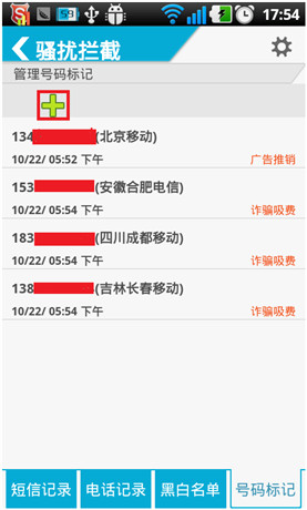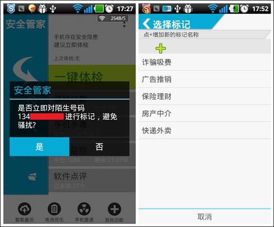 骚扰电话的克星、安全管家号码标记设置