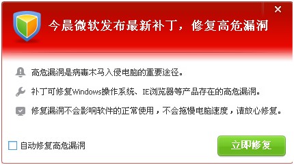 电脑管家提示您,请及时修复本次漏洞,保证个人账号、财产安全。