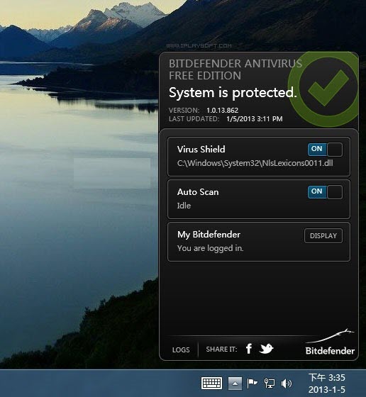 知名杀毒软件品牌 BitDefender 终于也推出了全功能免费版的杀毒软件 —— BitDefender Antivirus Free Edition。它最大的特点就是小巧轻盈、界面精美,完美支持 Windows 8,并且杀毒能力强劲。根据AVTest的测试数据统计,BitDefender 的杀毒率高达94%,比Avast!还要高一点~唯一可惜的是目前还没有中文语言界面……