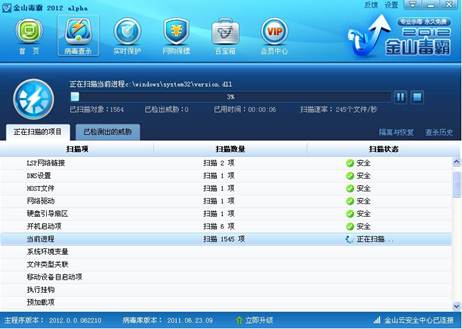 金山毒霸2012:全球最小的杀毒软件测试体验