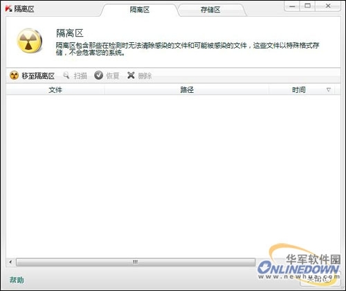 所谓隔离区就是那些在检测时无法清除感染的文件和可能被感染的文件,所保存的那些文件以特殊格式存储,不会危害用户的系统。