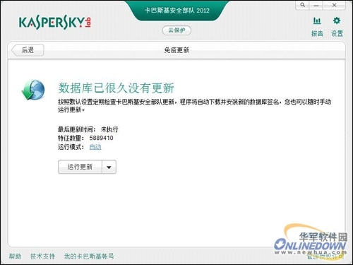 像小编刚安装卡巴斯基安全部队,特征库都是原始的特征库,因此安装后就要特征数据库进行更新,以便软件能够查杀最新的病毒及恶意软件。