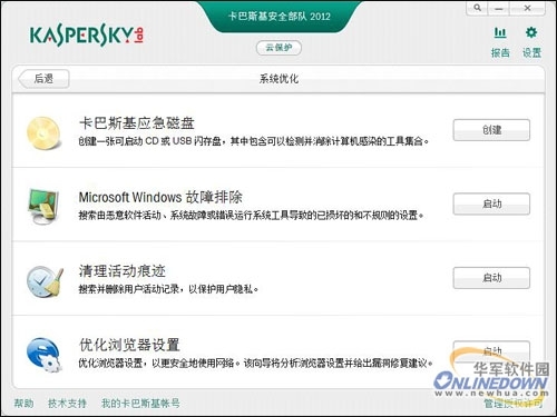 卡巴斯基安全部队2012能够排除windows故障,清理活动痕迹,优化浏览器的设置以及创建一张可启动CD和USB的闪存盘。可以说这些功能都是很实用的。