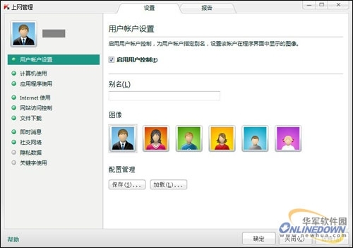 从上面的截图我们可以看到,卡巴斯基安全部队2012能对计算机的使用,应用程序使用,internet使用,网站访问控制,文件下载,即时消息,社交网络,隐私数据,关键字使用进行设置管理,基本上覆盖了我们使用电脑进行的各种操作。