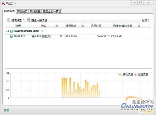 如上图,我们能够非常直观的看到网络流量的变化情况,自然也能很轻松的发现大量占用网络资源的应用程序,在必要的情况下,能够轻松的组织其占用大量的网络流量。