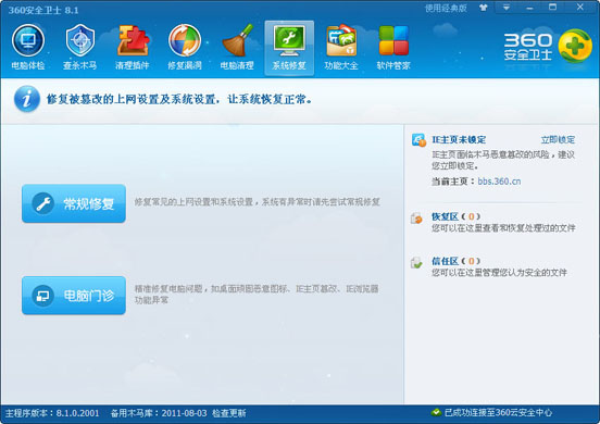系统修复可以检查你电脑中多个关键位置是否处于正常的状态。