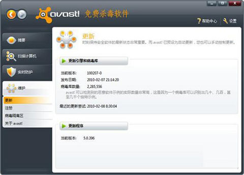 来自捷克斯洛伐克的avast!,已有数十年的历史,在国外市场一直处于领先地位。avast!个人用户版包括家庭版、专业版、家庭网络特别版,其中avast!家庭版为免费版本,可免费使用。 虽然avast! Free Antivirus是免费杀毒软件,但功能却非常强大,包括七大模块::网络防护,标准防护,网页防护,即时信息保护,互联网电子邮件防护,P2P防护,网络保护。