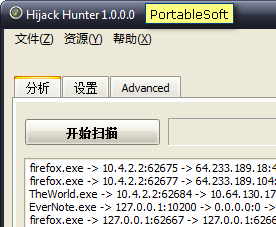 Hijack Hunter由NoVirusThanks发布,我简单汉化了下,有兴趣的可以看看,翻译不对的地方还请指教,NoVirusThanks还有个在线病毒扫描服务:Multi-Engine Antivirus Scanner,扫描速度有点慢,不过扫描报告很清爽,可以查看Hijack Hunter的扫描报告。