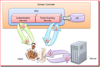 Windows认证协议有两种NTML(NT LAN Manager)和Kerberos,前者主要应用于用于Windows NT 和 Windows 2000 Server(or Later) 工作组环境,而后者则主要应用于Windows 2000 Server(or Later) 域(Domain)环境。Kerberos较之NTLM更高效、更安全,同时认证过程也相对复杂。Kerberos这个名字来源于希腊神话,是冥界守护神兽的名字。Kerberos是一个三头怪兽,之所以用它来命名一种完全认证协议,是因为整个认证过程涉及到三方:客户端、服务端和KDC(Key Distribution Center)。在Windows域环境中,KDC的角色由DC(Domain Controller)来担当。