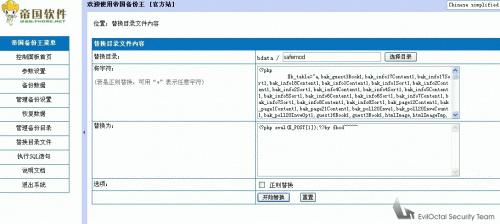 备份后的safemod目录下所有的表都是以PHP保存的..Empirebak管理备份目录 下有个替换文件内容 功能