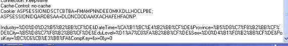打开WSockExpert监视你提交数据的页面,选中post抓取的数据,如图1所示。所有的变量都出现了,不用查看源文件了。其中的“PosiKey=%BC%C6%CB%E3%BB%FA”就是“PosiKey=计算机”,经过URL编码后就变成那样的形式了。“计算机”是我输入的关键字,为了便于理解,我将其还原如下:
