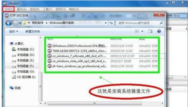 2.点击左上角“文件”,选择“打开”,最后选择需要的操作系统镜像文件,点击“打开”。