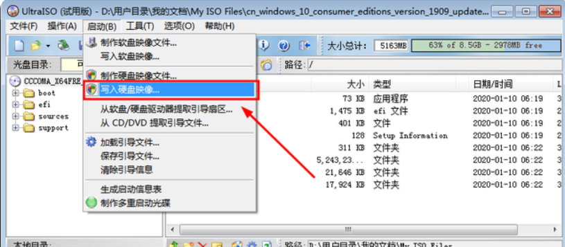 3.插入U盘在电脑上,选择“启动”,再选择“写入硬盘映像”。