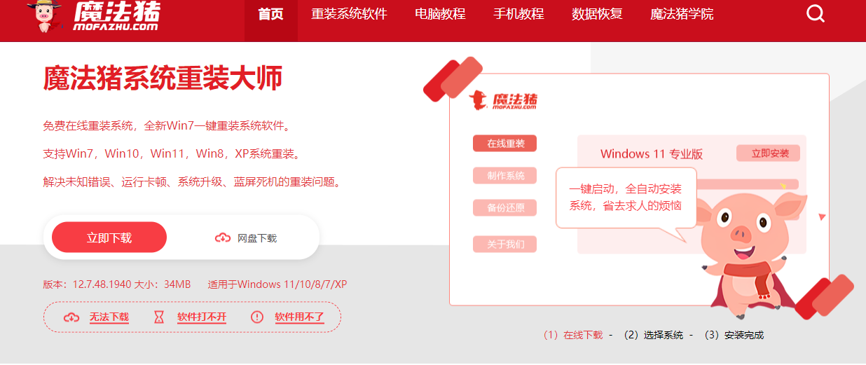 1、打开浏览器,搜索魔法猪官方网站:https://mofazhu.com/。
