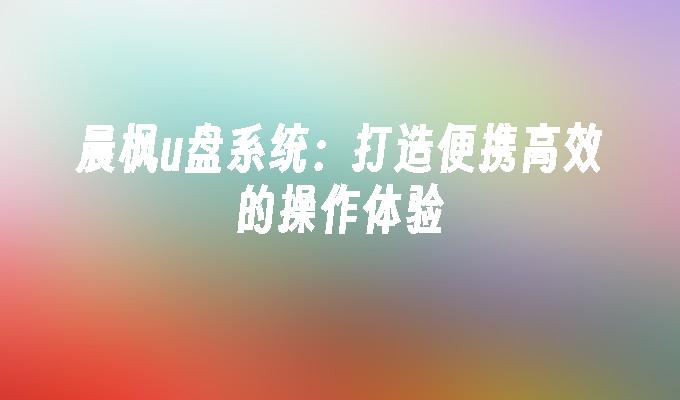 晨枫u盘系统:打造便携高效的操作体验