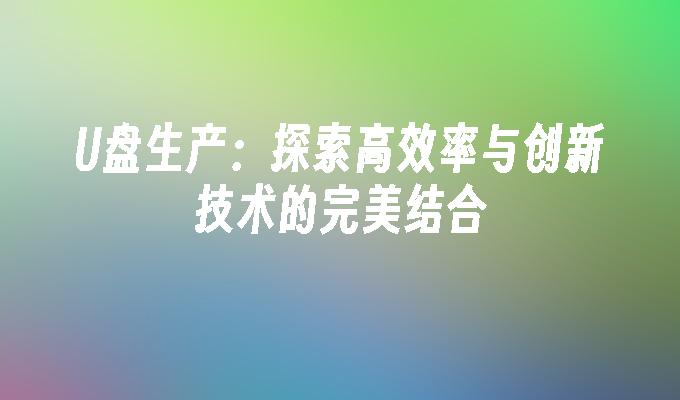 简介:本文将探讨U盘生产中高效率与创新技术的结合,强调其重要价值。