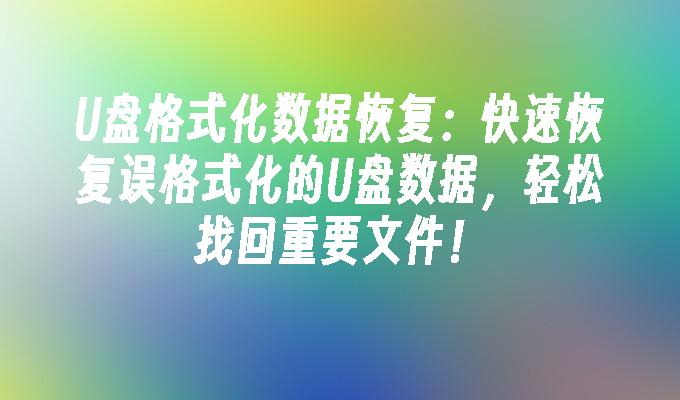 U盘格式化数据恢复:快速恢复误格式化的U盘数据,轻松找回重要文件!