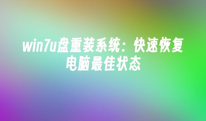 简介:本文将介绍win7u盘重装系统的方法,通过使用话题引出正文内容,并强调其快速恢复电脑最佳状态的价值。