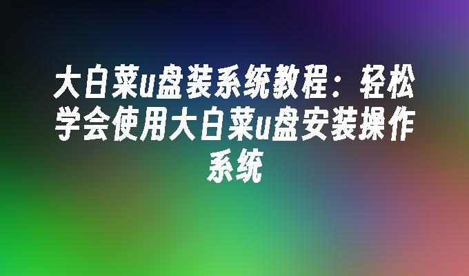 大白菜u盘装系统教程:轻松学会使用大白菜u盘安装操作系统