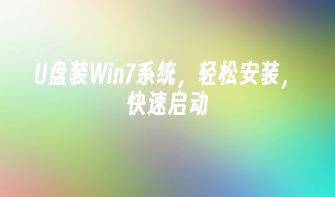 简介:本文将介绍如何使用U盘装Win7系统,轻松安装,快速启动。通过使用U盘安装系统,可以方便快捷地安装Win7系统,同时提高系统的启动速度和性能,为用户带来更好的使用体验。