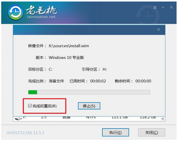 3、 第一次重启时,需要拔出u盘启动盘,不然就会重新进入老毛桃u盘winpe界面。