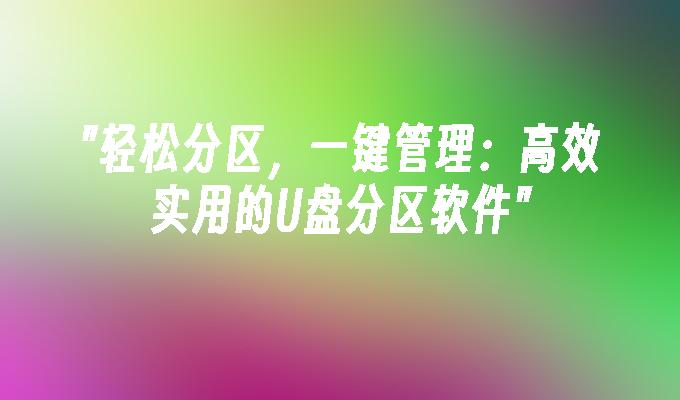 简介:在日常使用电脑或手机时,我们经常需要使用U盘进行数据传输和存储。然而,U盘的分区和管理却是一个相对繁琐的操作。为了解决这个问题,出现了一款名为"轻松分区,一键管理:高效实用的U盘分区软件"的工具。本文将从多个方面对这款软件进行详细阐述,帮助读者更好地了解和使用。
