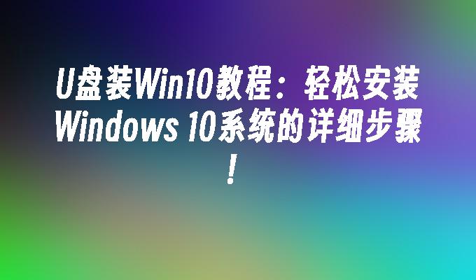 U盘装Win10教程:轻松安装Windows 10系统的详细步骤!