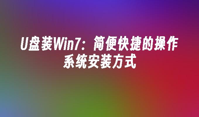U盘装Win7:简便快捷的操作系统安装方式