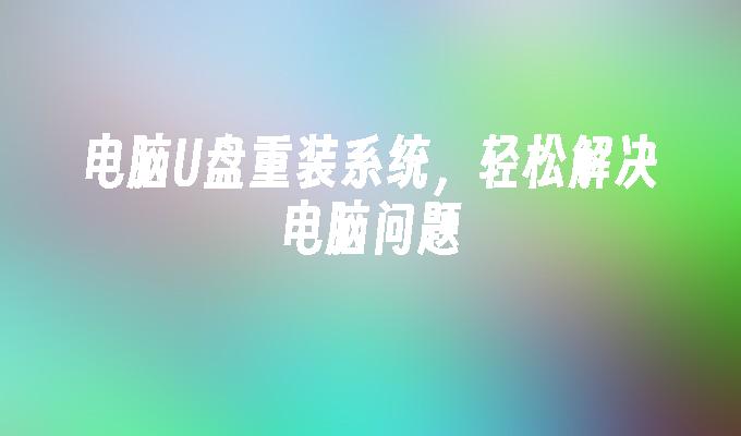 简介:电脑U盘重装系统,轻松解决电脑问题。在电脑使用过程中,我们经常会遇到各种问题,如系统崩溃、病毒感染等,而使用U盘重装系统可以快速解决这些问题。本文将介绍使用U盘重装系统的方法和步骤,帮助读者轻松解决电脑问题。