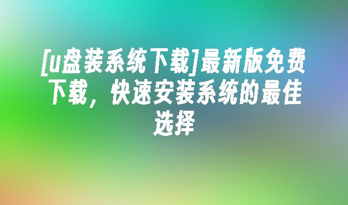 [u盘装系统下载]最新版免费下载,快速安装系统的最佳选择