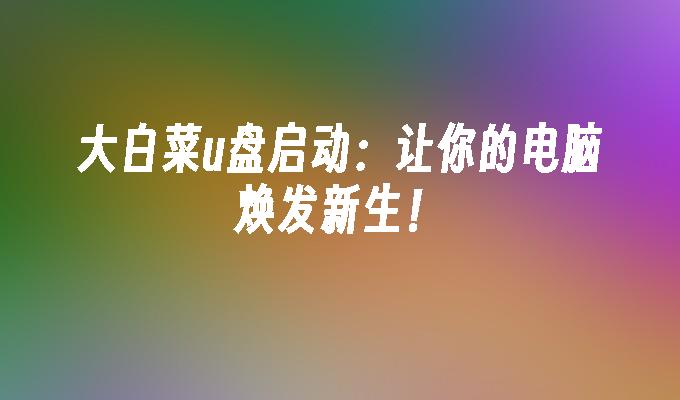 简介:大白菜U盘启动:让你的电脑焕发新生!