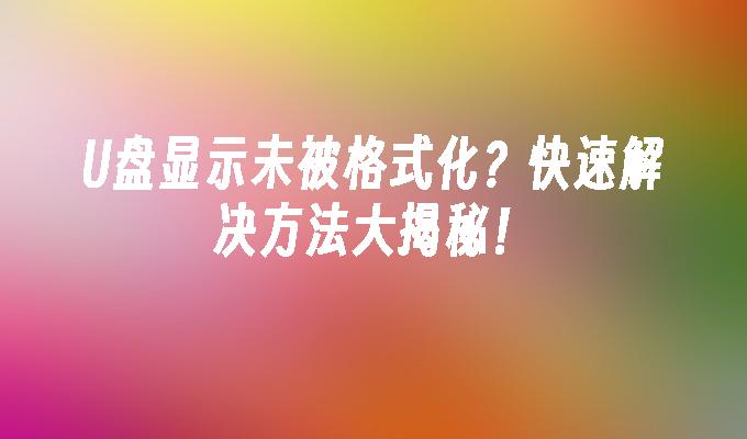 U盘显示未被格式化?快速解决方法大揭秘!