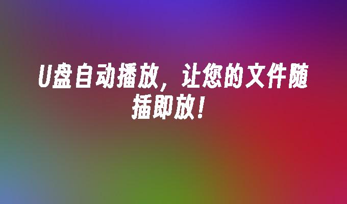 简介:U盘自动播放,让您的文件随插即放!本文将介绍如何使用U盘实现自动播放功能,方便快捷地访问您的文件。通过简单的设置,您可以让U盘插入电脑或手机后,自动弹出文件夹,让您的文件随时随地可用。