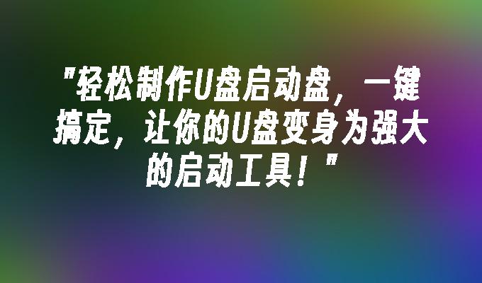 轻松制作U盘启动盘,一键搞定,让你的U盘变身为强大的启动工具!