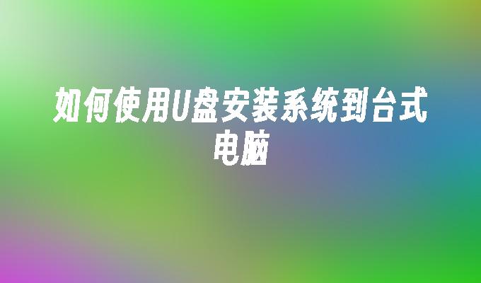 简介:本文将介绍如何使用U盘安装系统到台式电脑,通过使用U盘安装系统,可以方便快捷地为台式电脑安装操作系统,提高电脑的使用效率和稳定性。