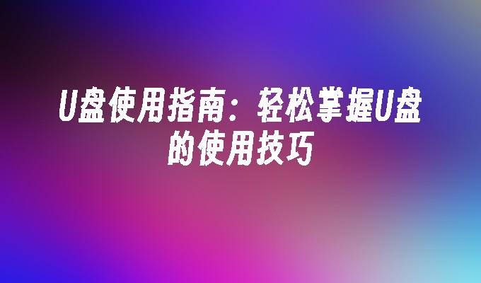 简介:本文[U盘使用指南:轻松掌握U盘的使用技巧]将详细介绍如何正确使用U盘,并提供一些实用的技巧和方法,帮助读者更好地利用U盘进行数据传输和存储。通过掌握这些使用技巧,读者可以更加方便地管理和备份自己的数据,提高工作和学习效率。